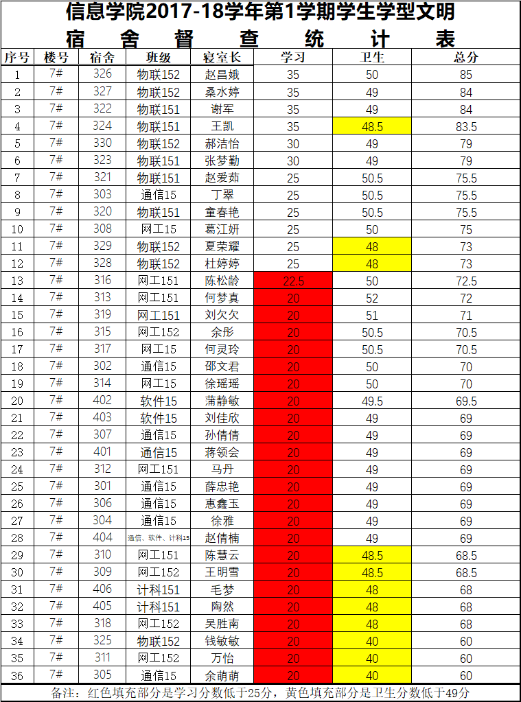 9周1次学习型文明宿舍检查情况通报