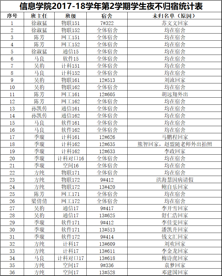 5月5日学生夜不归宿情况通报