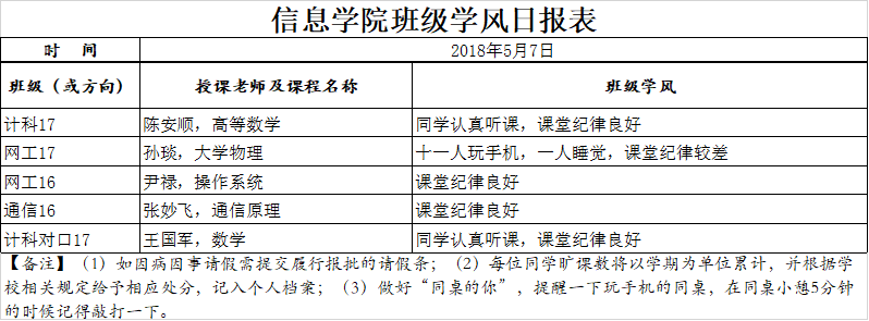 5月7日学生上课情况通报