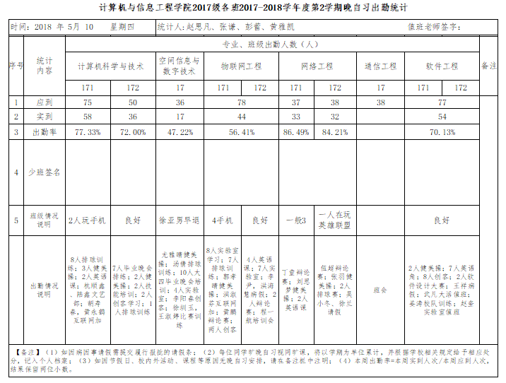 5月10日大一晚自习出勤情况通报
