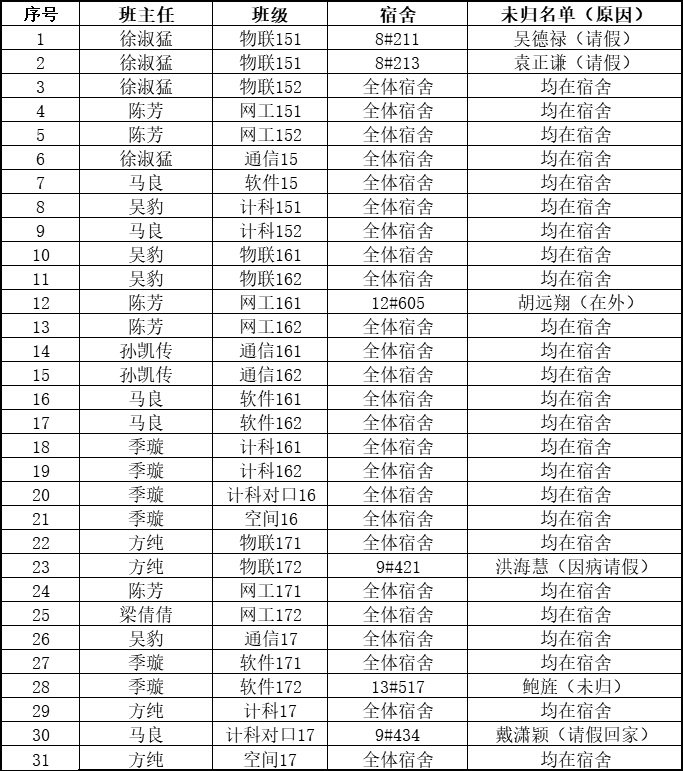 5月17日学生夜不归宿情况通报