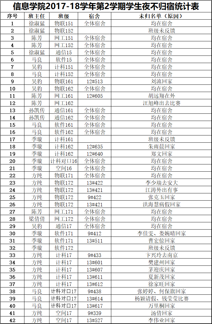 5月26日学生夜不归宿情况通报