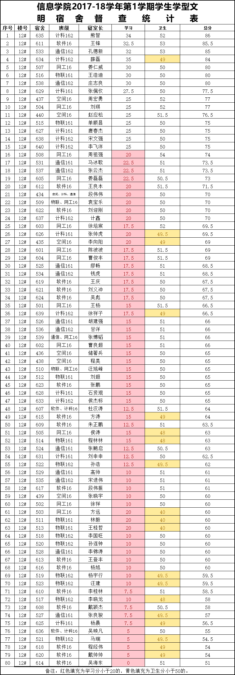 13周1次学习型文明宿舍检查情况通报