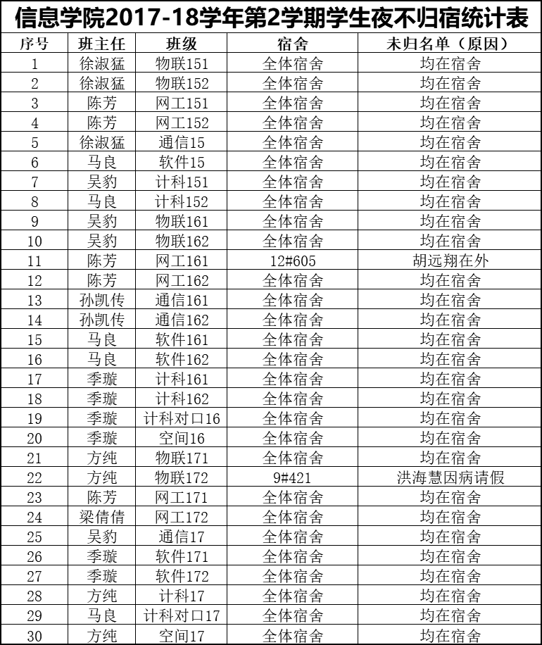 5月29日学生夜不归宿情况通报