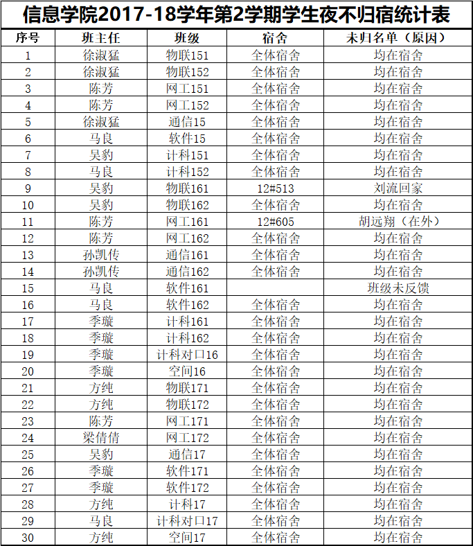 5月30日学生夜不归宿情况通报