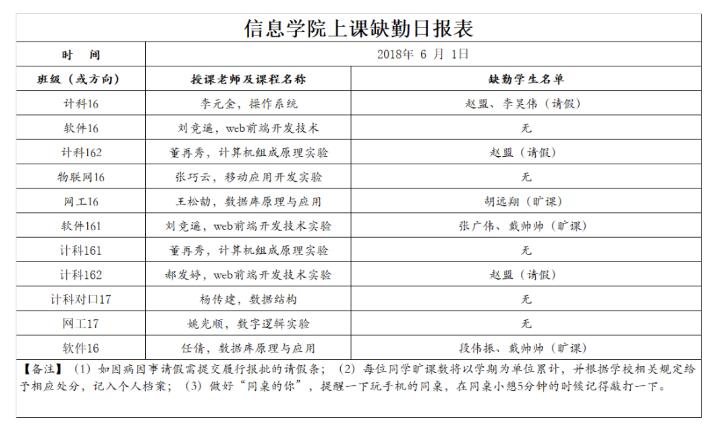 6月1日上课缺勤情况通报