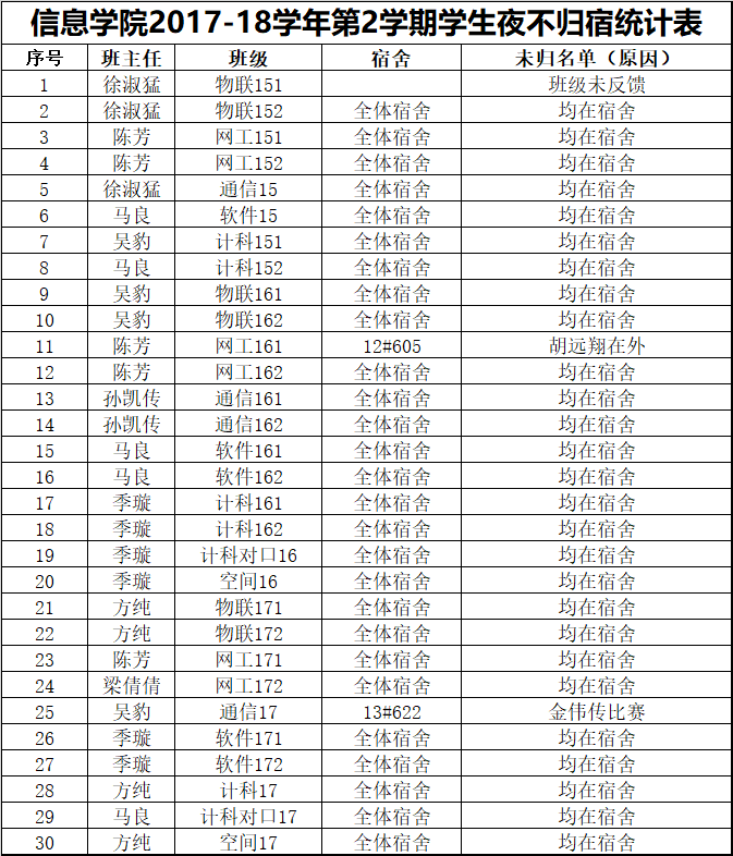 6月4日学生夜不归宿情况通报
