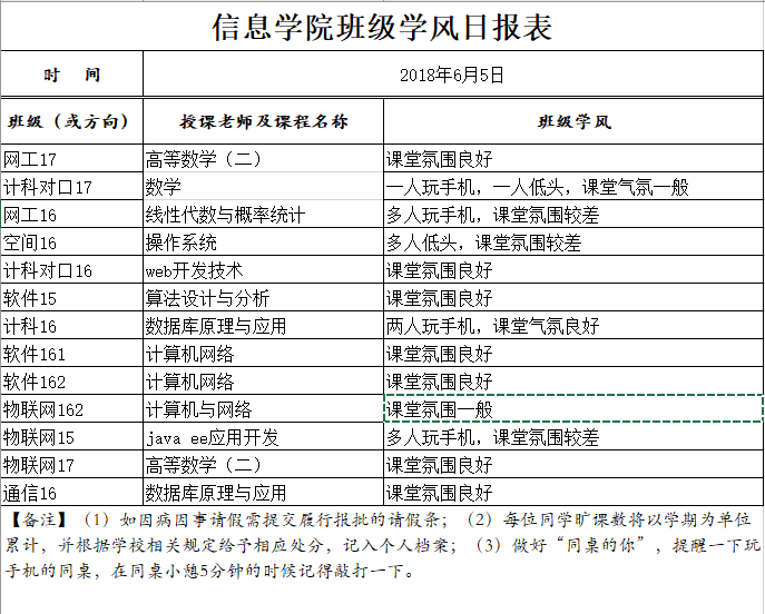 6月5日上课情况通报