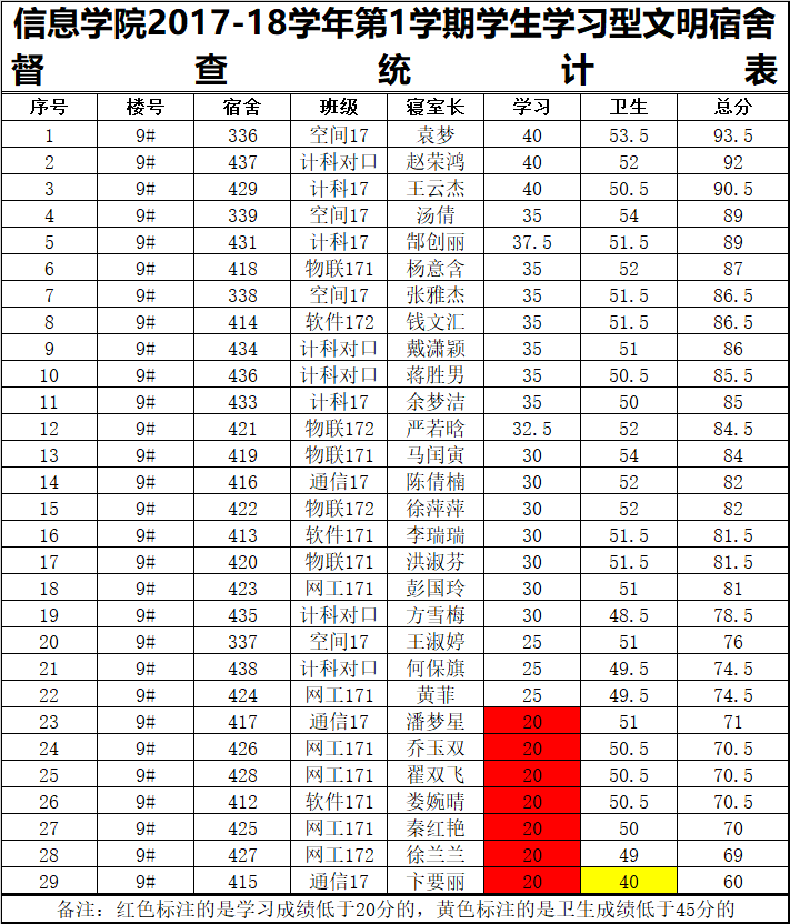 14周2次学习型文明宿舍检查情况通报