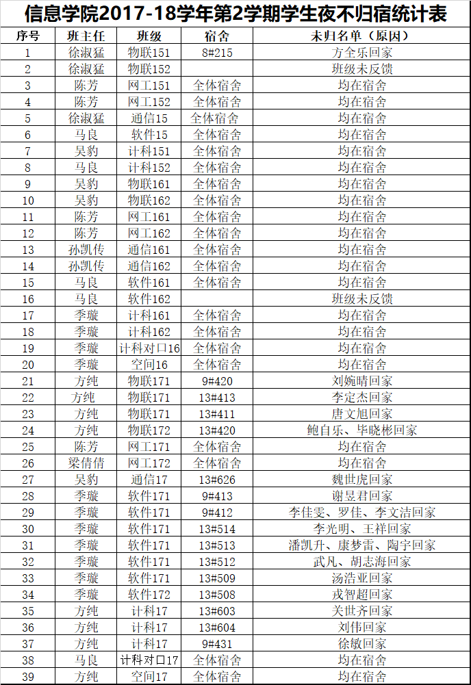 6月14日学生夜不归宿情况通报