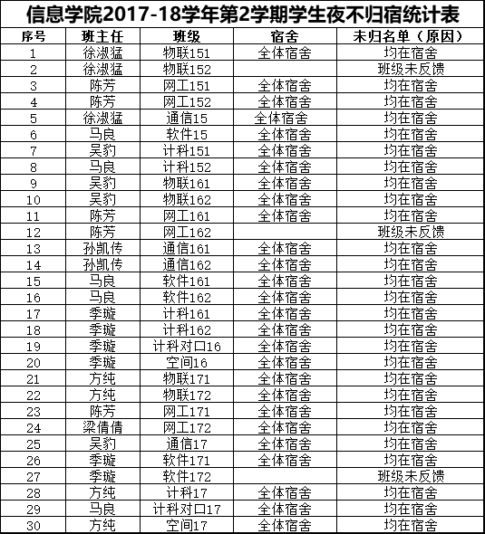 6月19日学生夜不归宿情况通报