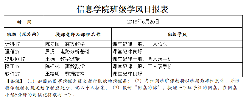 6月20日上课情况通报
