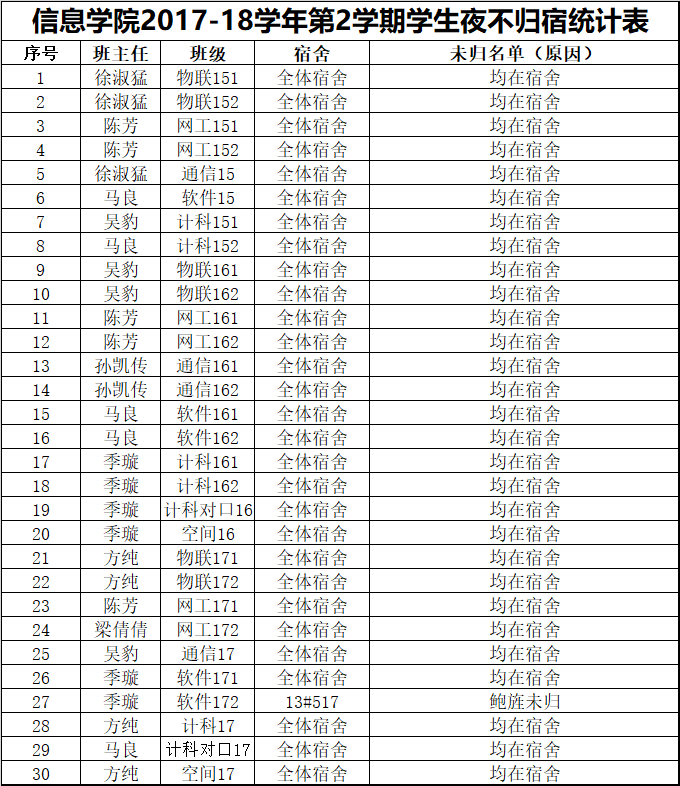 6月25日学生夜不归宿情况通报