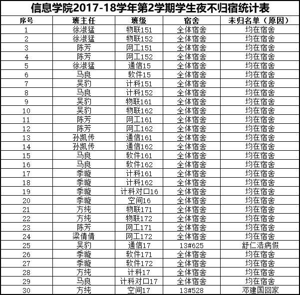 6月29日学生夜不归宿情况通报