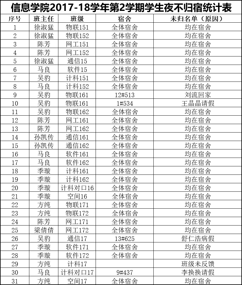 7月3日学生夜不归宿情况通报