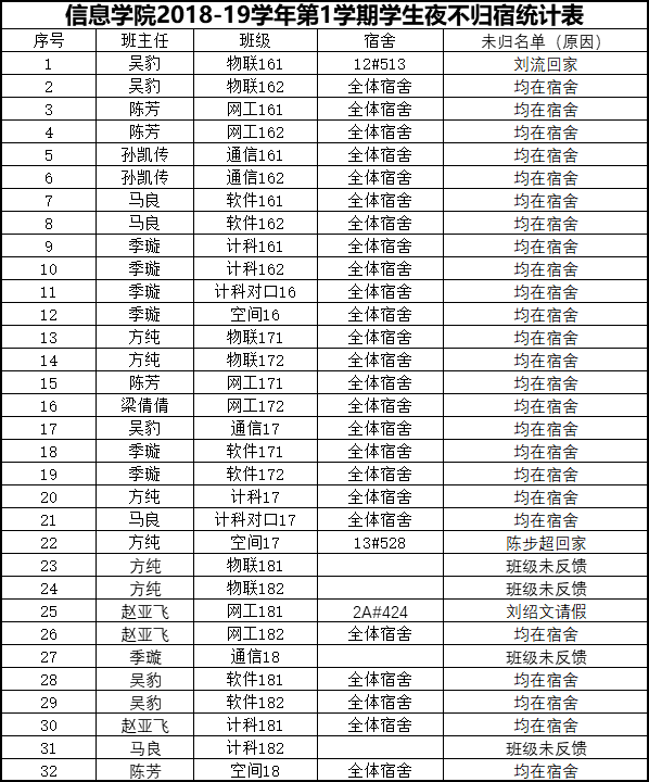 9月16日学生夜不归宿情况通报