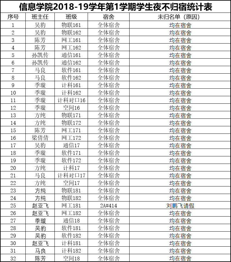 10月10日学生夜不归宿情况通报