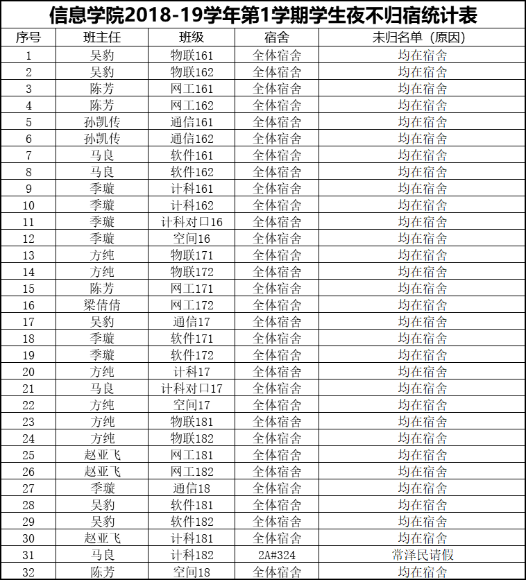 10月11日学生夜不归宿情况通报