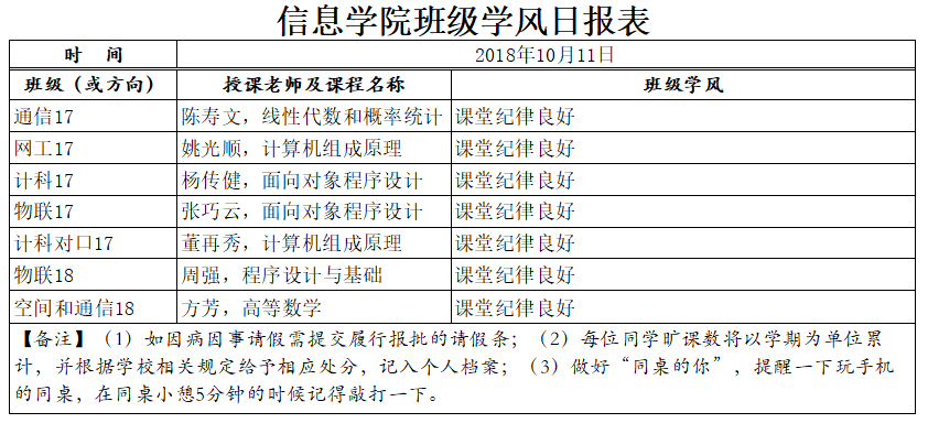 10月11日上课情况通报