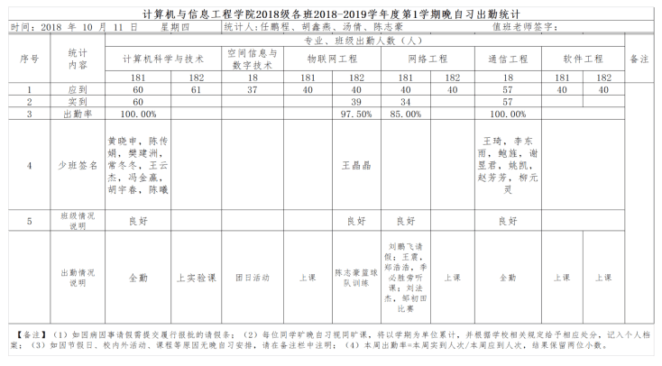 10月11日大一晚自习出勤情况通报