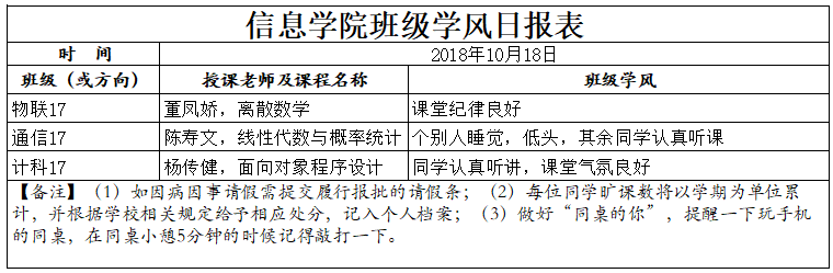 10月18日上课情况通报