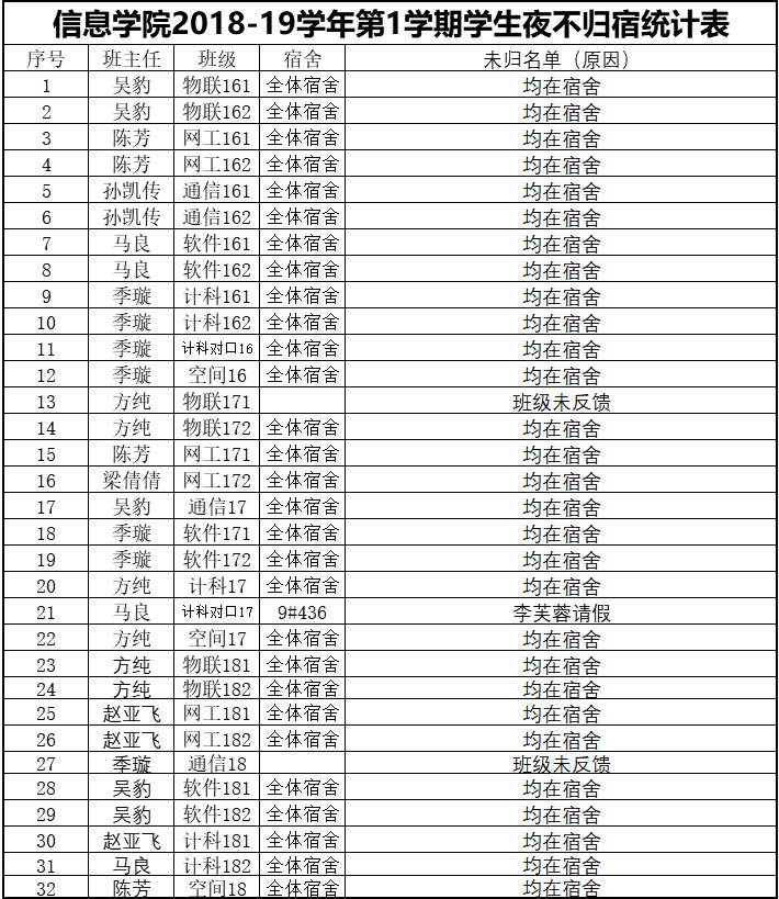 11月1日夜不归宿通报情况
