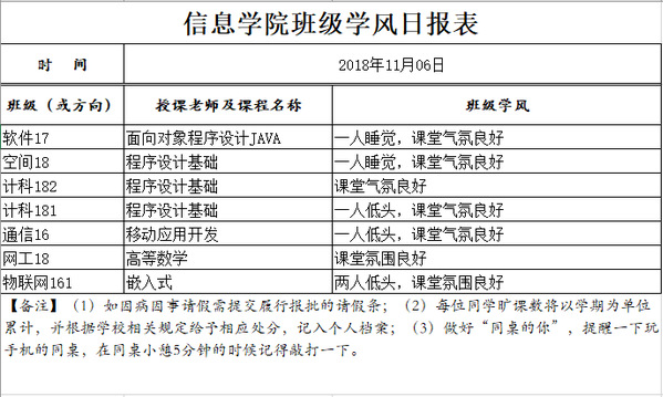 11月6日上课情况通报