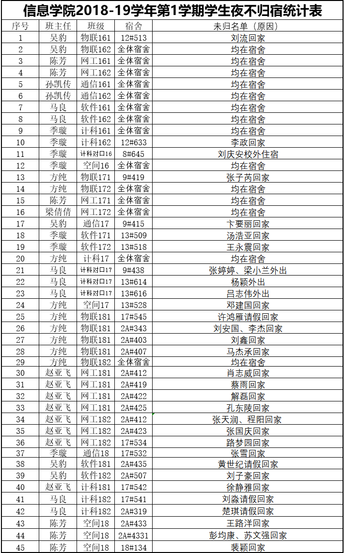 11月24日夜不归宿情况通报