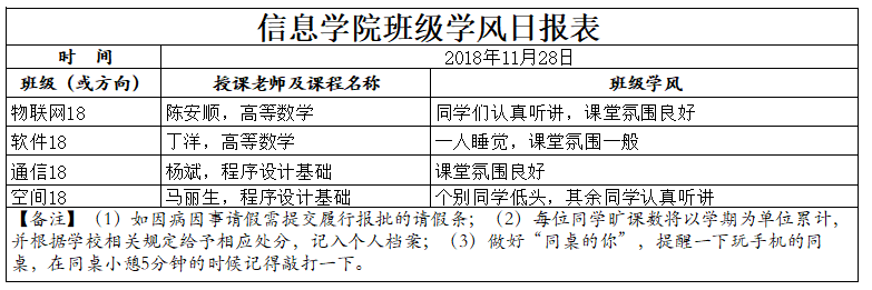 11月28日上课情况通报