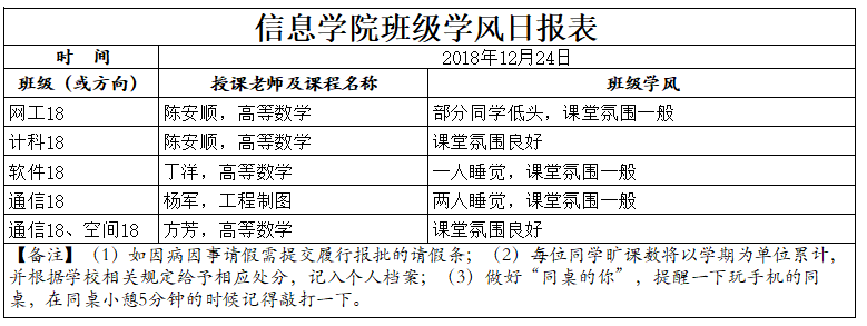 12月24日上课情况通报