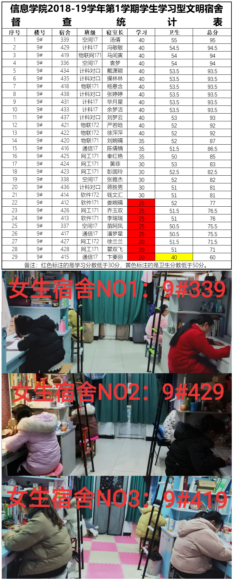 17周2次学习型文明宿舍检查情况通报