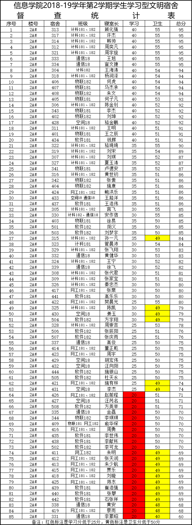 2周1次学习型文明宿舍检查情况通报