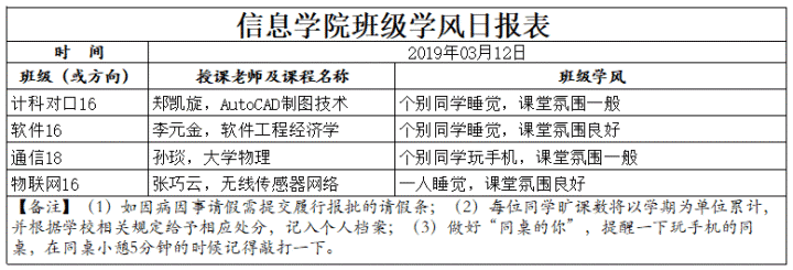 3月12日上课情况通报