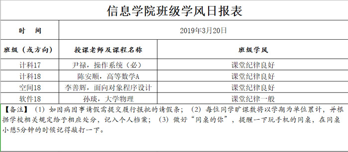3月20日上课情况通报