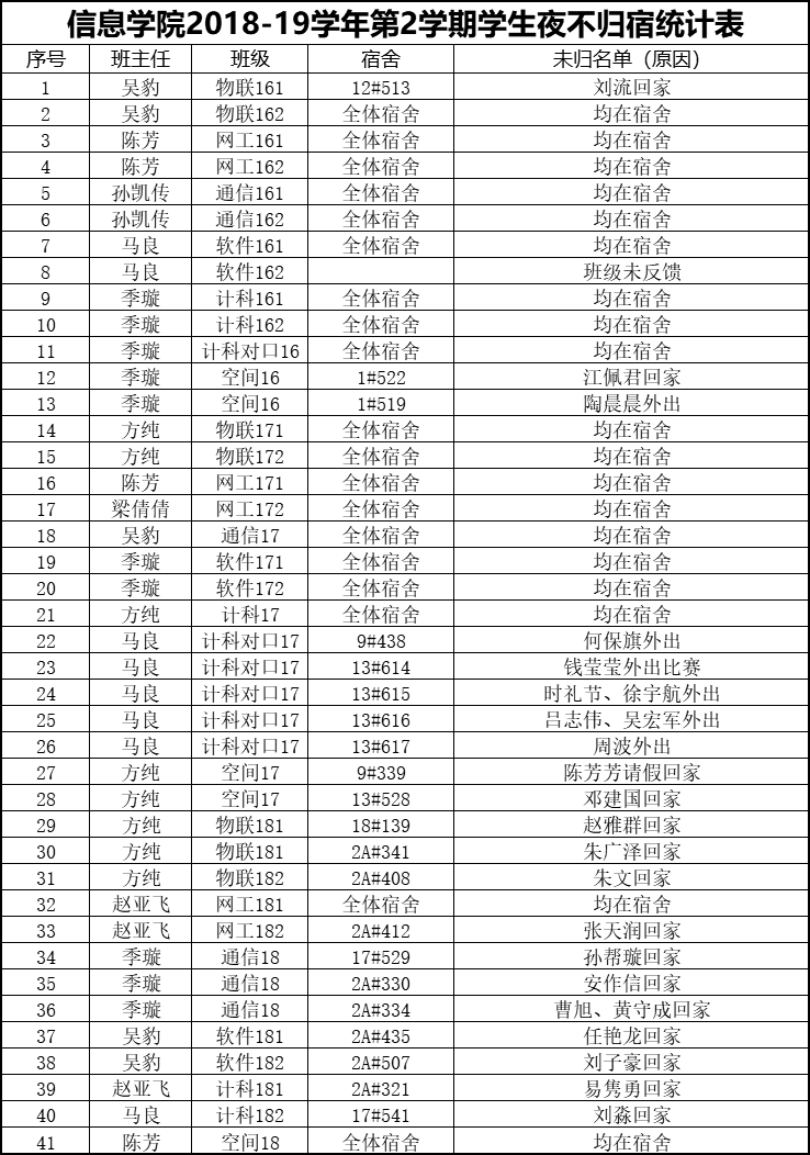 4月13日夜不归宿情况通报