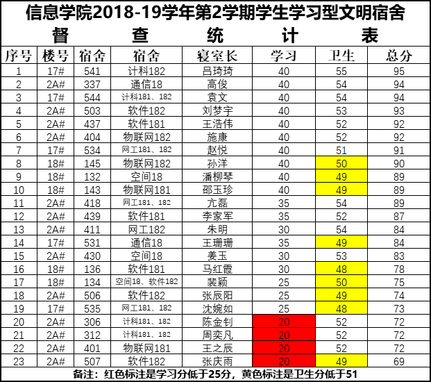 9周1次学习型文明宿舍检查情况通报