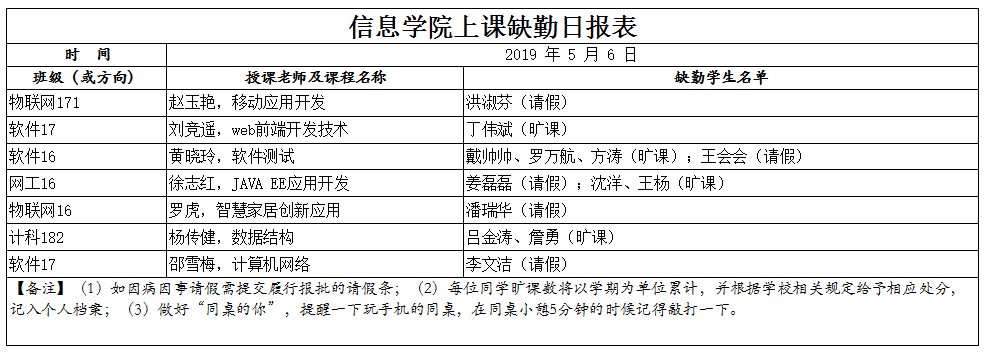 5月6日上课缺勤情况通报