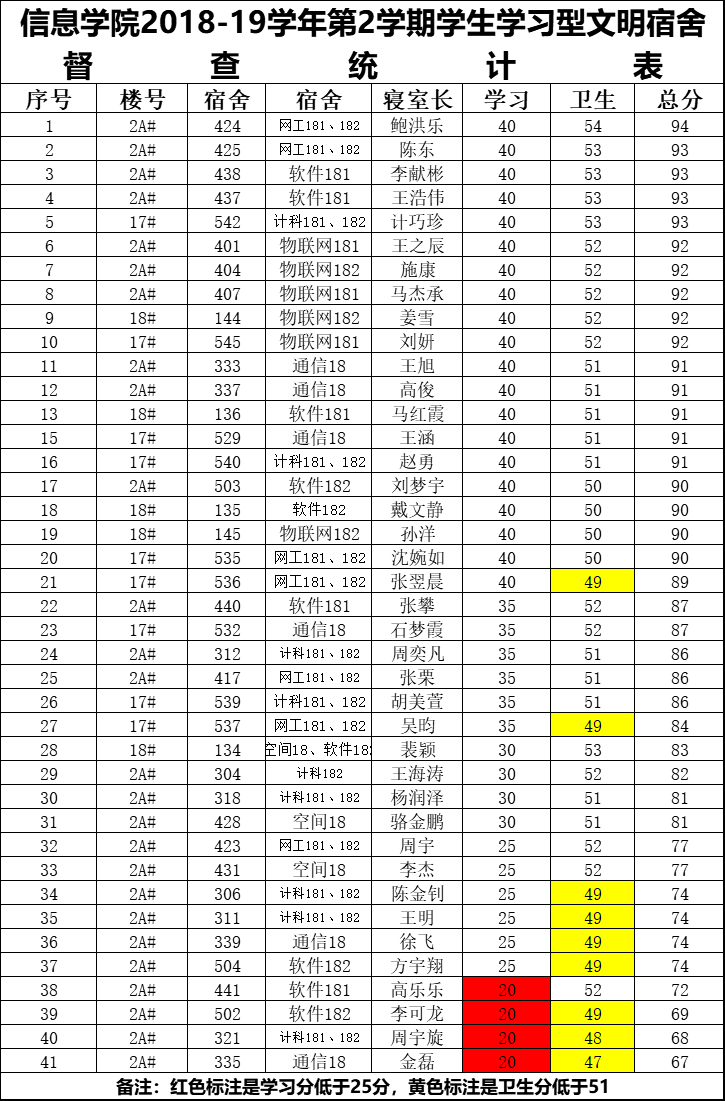 12周1次学习型文明宿舍检查情况通报