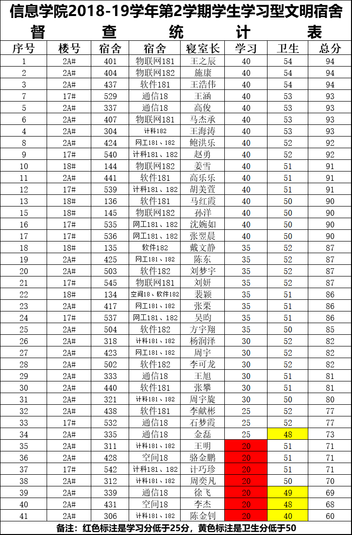 14周1次学习型文明宿舍检查情况通报