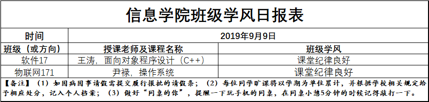9月9日上课情况通报