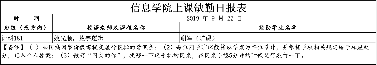 9月22日上课缺勤情况通报