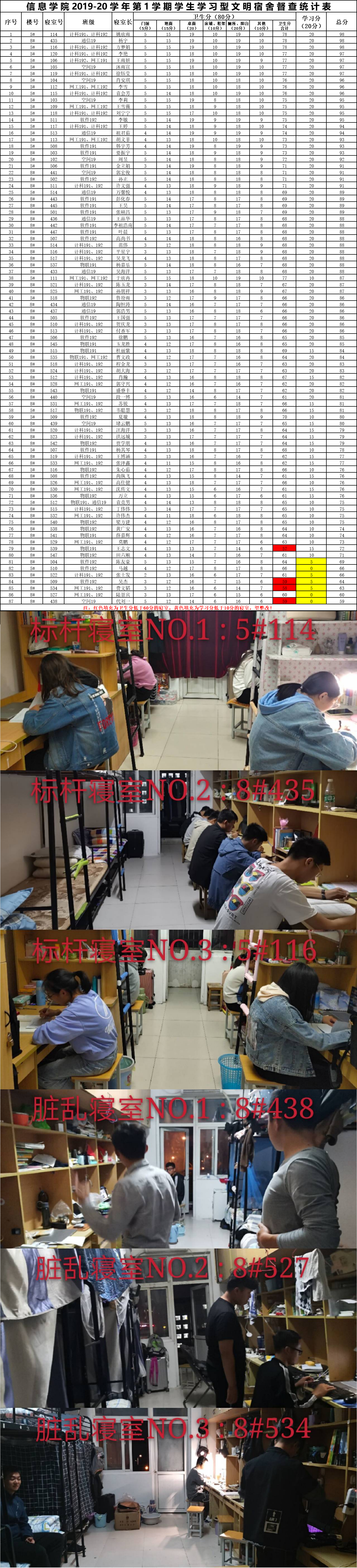 7周2次学习型文明宿舍检查情况通报