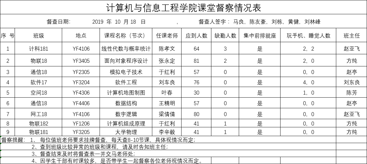 10月18日课堂督察情况