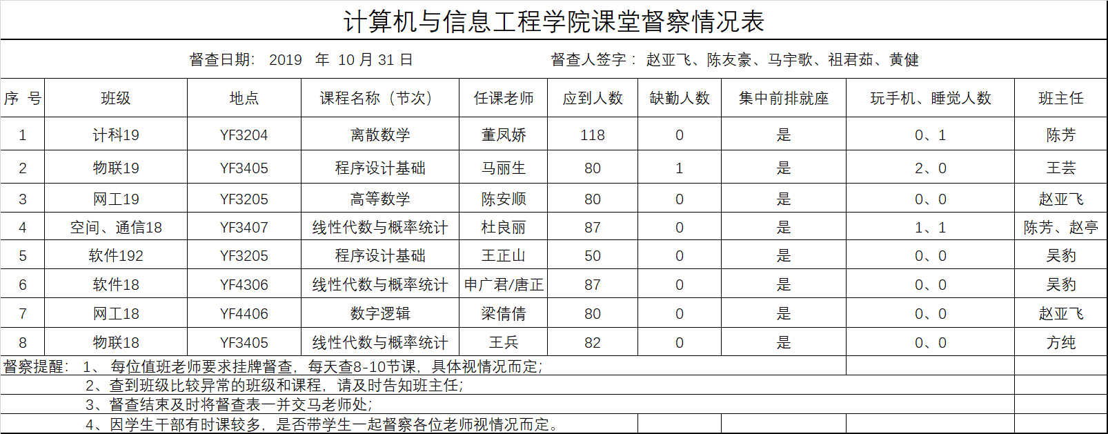 10月31日课堂督察情况