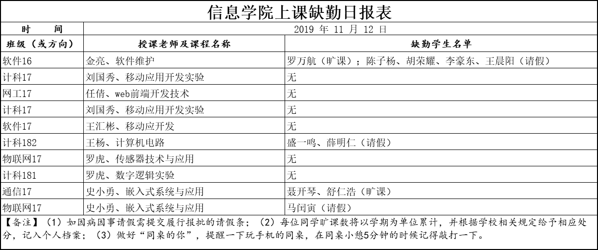 11月12日上课缺勤情况通报