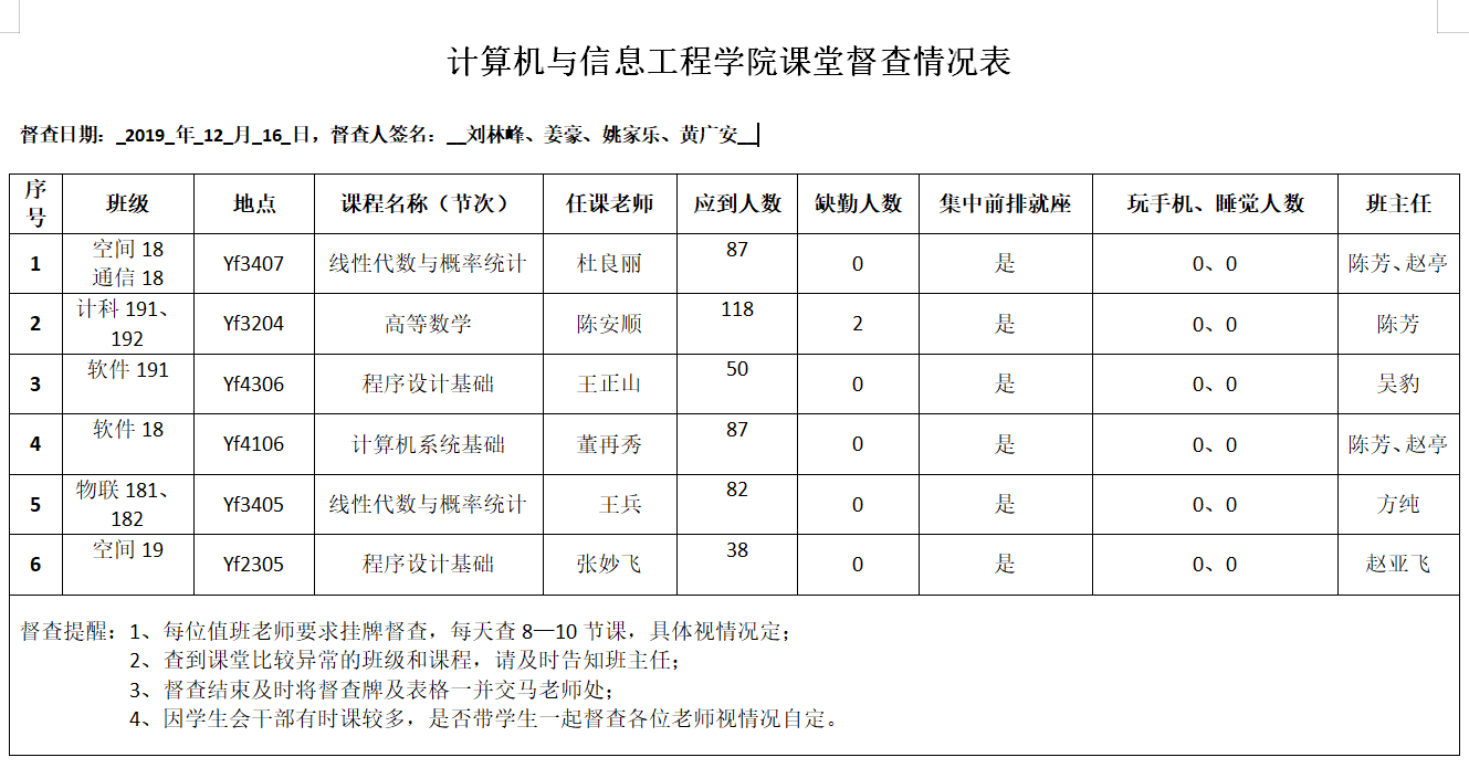 12月16号课堂督察情况