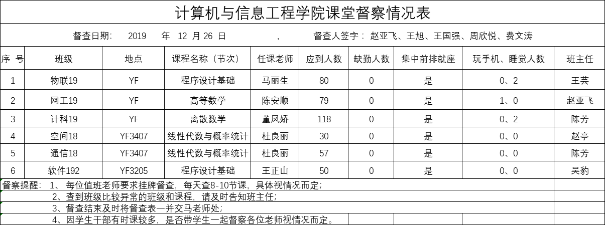 12月26号课堂督察情况