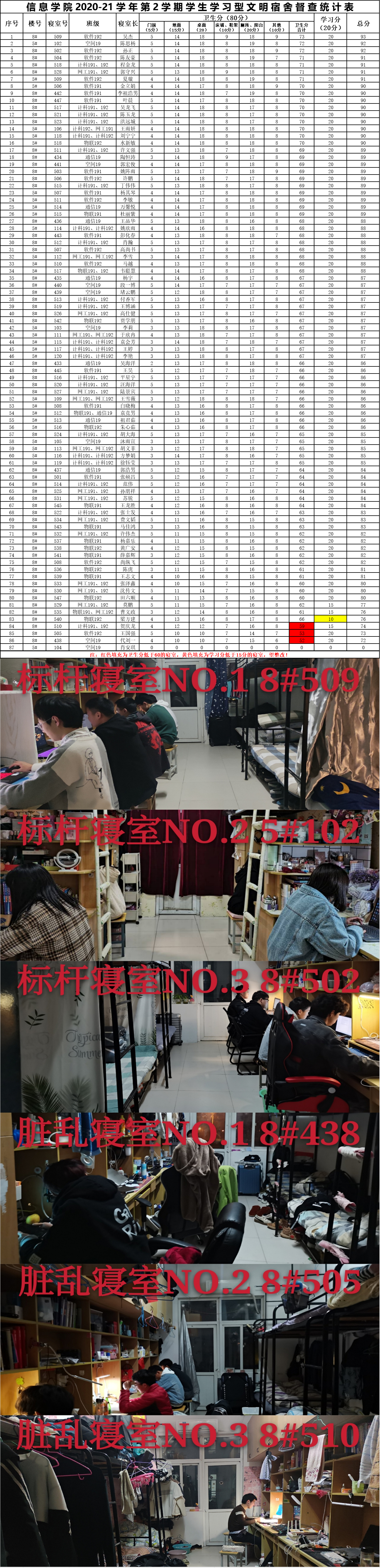 3周1次“学习型文明宿舍”检查情况通知
