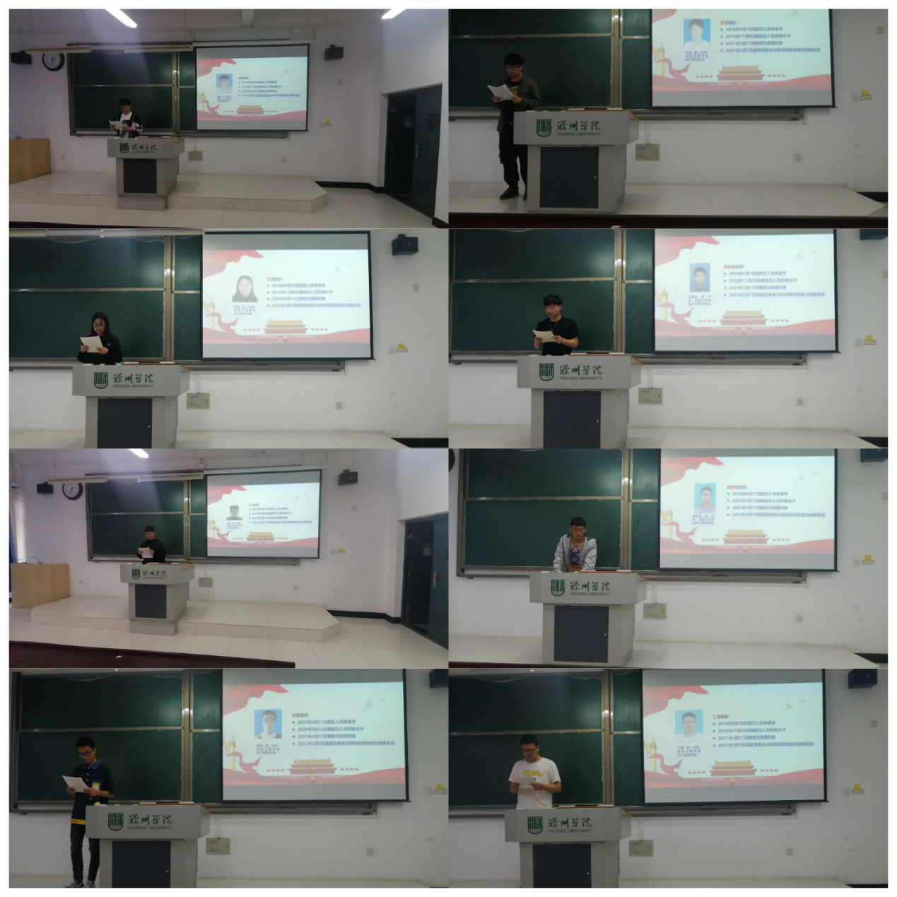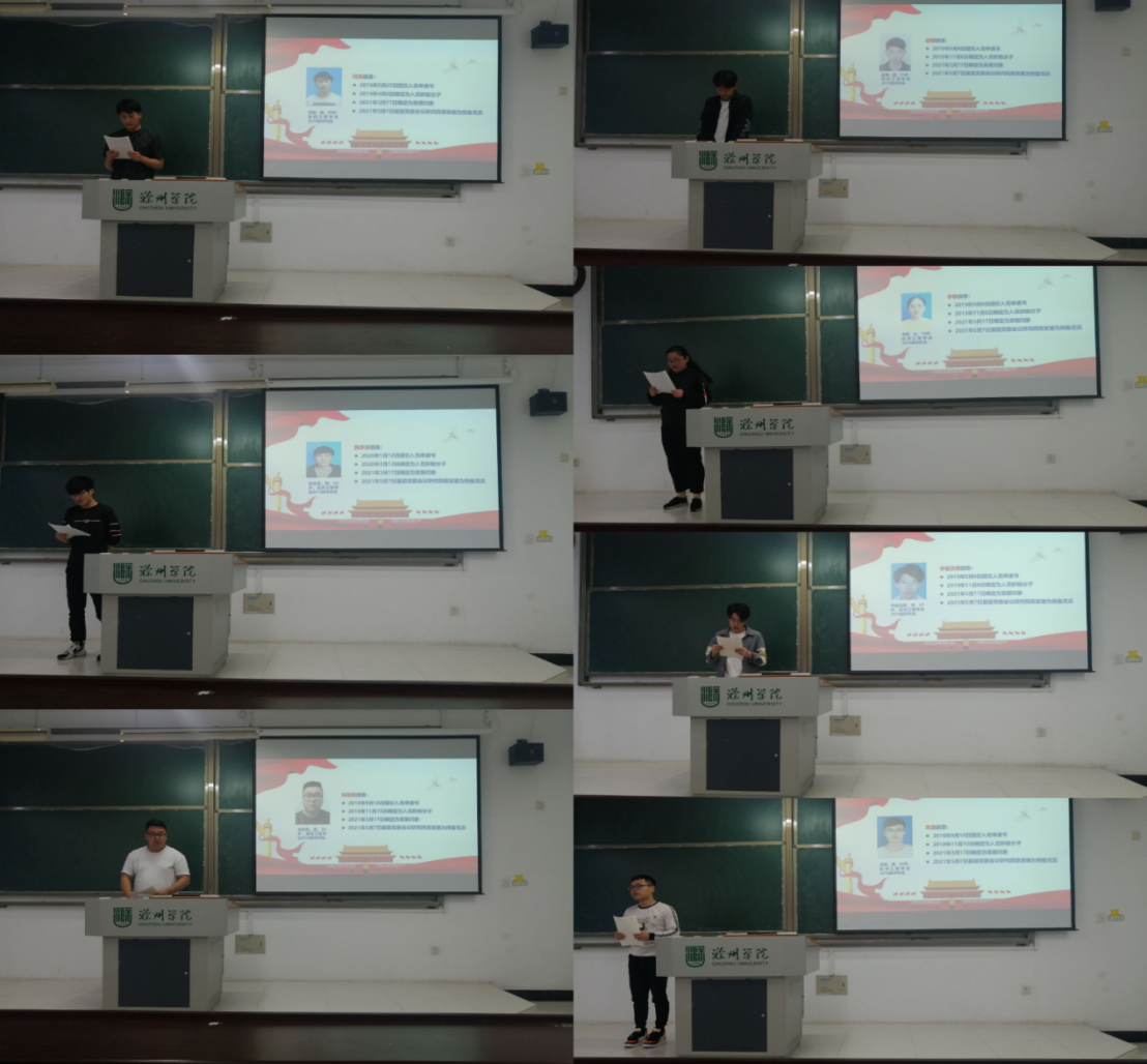 会议第三项,由韩煜、吴凡王晴等十五位2021年上半年拟发展对象宣读自己的入党申请书,汇报了自己对党的认识,入党动机,本人履历和主要社会关系。