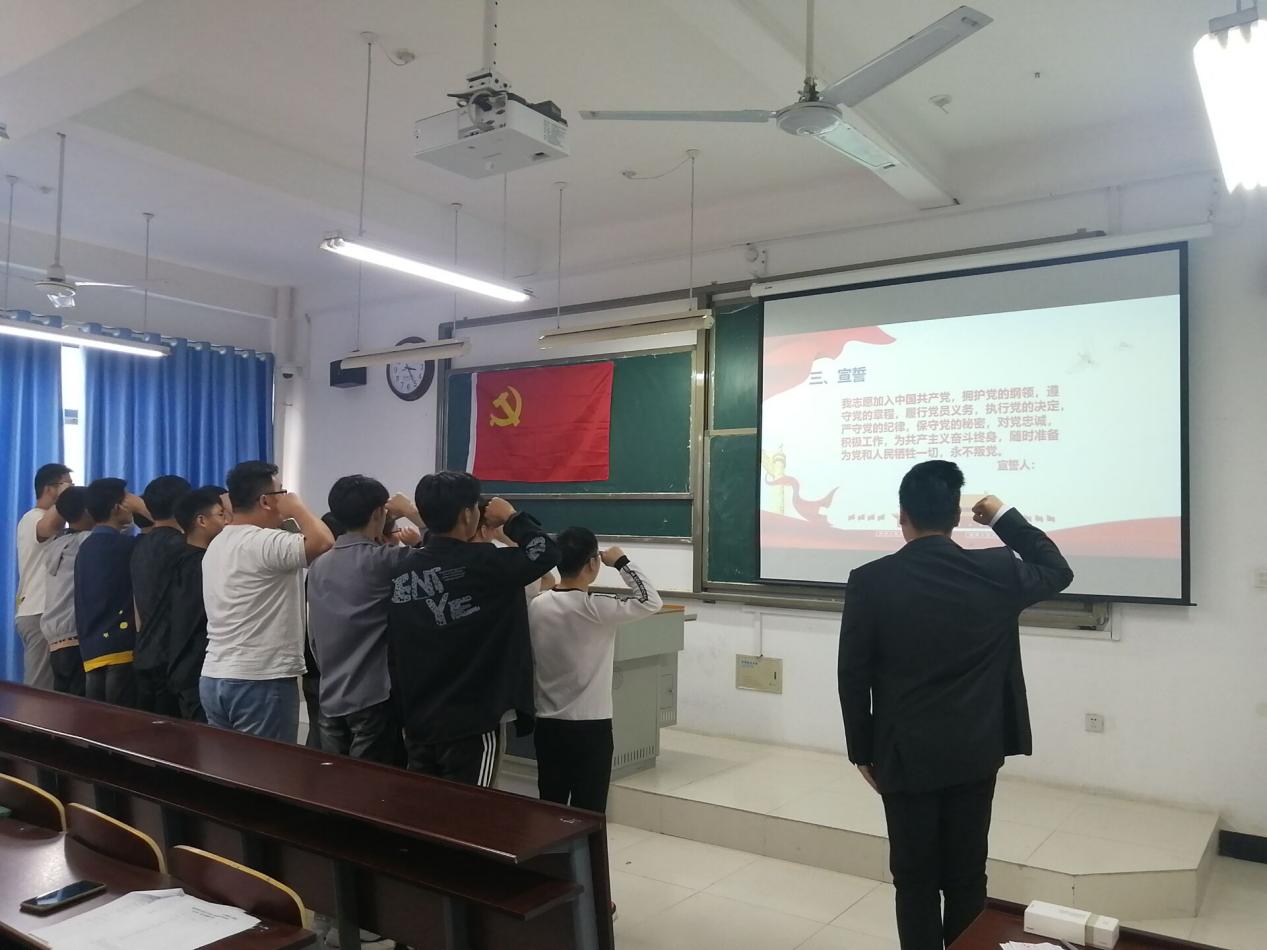 会议第六项,2021年上半年预备党员佩戴党员徽章,并在支部党员王世旭同志的带领下进行入党宣誓